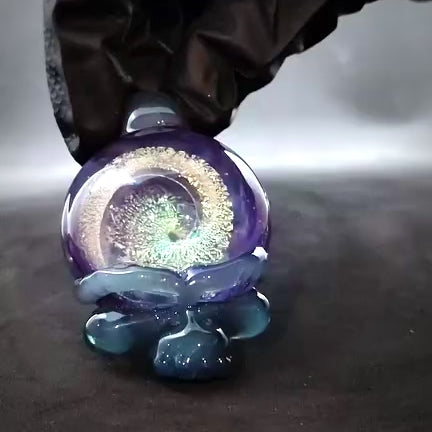 Glass blown skull with metallic spiral pendant.